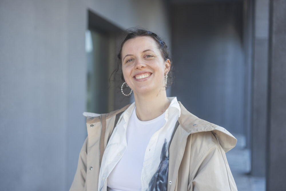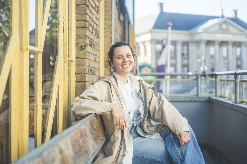 ‘FIELD is de plek waar nieuwe theaterwerkers je in beweging zet,’ zegt Jente Poiësz, trainee-programmamaker bij Jonge Harten. Vanaf het balkon van het Grand Theatre, uitkijkend over de Grote Markt, vertelt ze hoe zij samen met Gregory Caers (hoofdprogrammeur) het FIELD-programma ontwikkelde: twee dagen vol experiment, werk in wording en ontmoetingen tussen makers en publiek. ‘We geven ruimte aan dat wat in beweging is,’ legt Jente uit. ‘Waar het voor mij spannend wordt, is als het niet-weten even mag bestaan tussen deelnemers, makers en publiek. Dáár gebeurt iets, dat is FIELD voor mij.’