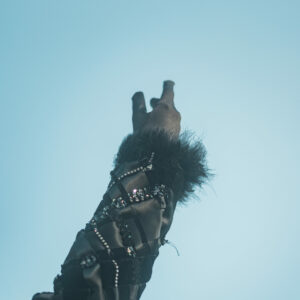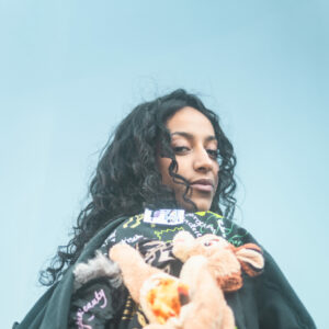 Ze zit naast Gerbrand, met wie ze vorig jaar de jas getiteld De Infinity maakte. Er wordt gelachen. De twee zijn twee handen op één buik. Of beter: twee armen in één jas. Hun gezamenlijke creatie is namelijk een unieke jas. Strak en hoog gesloten, maar kleurrijk van binnen. Met elementen uit haar slaapkamer, waaronder een platgetrapt blikje Red Bull en een knuffel van Bambi. De jas is onderdeel van Raven, met hun project Wearable Stories. Een project dat het verhaal van jongeren vertelt die buiten de samenleving vallen. Maar juist daardoor het verdienen om gezien te worden. Raven zocht daarom contact met jongeren van onder andere zorginstelling Cordaan te Amsterdam en Elker Jeugdzorg in Groningen. Samen met de makers van Raven en modemerk Bonne Suits ontwierpen jongeren verschillende jassen waarmee hun belevingswereld en struggles zichtbaar werden. De jas weerspiegelt op deze manier de situatie van de desbetreffende jongere. Zo ook die van Narmin. De buitenkant laat zien hoe ze zich naar de buitenwereld toont, de binnenkant wat ze voelt maar niet altijd wilt laten zien. Wat het nog unieker maakt: de jas wordt gedragen door beleidsmakers, kunstenaars en het publiek van Jonge Harten om zo het verhaal van de jongere te dragen.