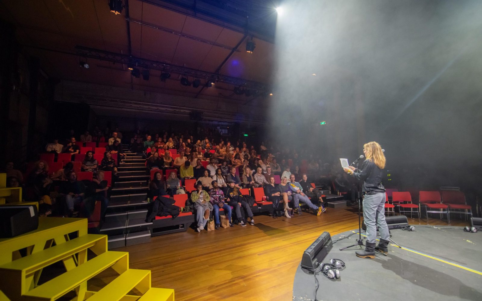 Voor velen voelt ook het theater nog als een onveilige plek, een ongekende plek… maar deze week zijn er tientallen geraakt die hebben gevoeld dat dit een plek is waar je mag zoeken, twijfelen en je mag uitspreken om vervolgens weer iets anders te denken. Scholieren, studenten, en ook jonge makers die er ook niet onderuit kunnen dat zij de druk voelen om te moeten presenteren in plaats van te onderzoeken.