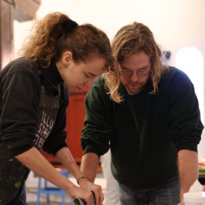 Mirthe van Wermeskerken (1998) is an illustrator and visual artist. Through drawings, screen printing, linocuts and ceramics, she creates a new world that rests on the edge of reality. Birds and nature play an important role in her contrasting illustrations. In addition to her work as an artist, she has been active as a workshop leader for a number of years, enthusiastically sharing her artistic knowledge with various target groups. Mirthe is also currently working as a programme coordinator for Stichting De Vrolijkheid, where she organises a diverse artistic programme for young residents of the AZC Ter Apel asylum seekers’ centre.