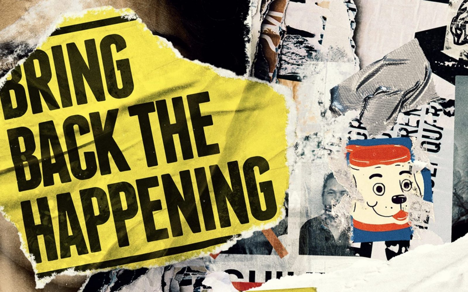 Nood aan een happening. Bring Back The Happening is noch een voorstelling, noch een show. Samen met het publiek wordt er een collectief ritueel gebouwd. We hebben genoeg stil gezeten, BRING BACK THE HAPPENING! Together. Dat lijf moet mee.