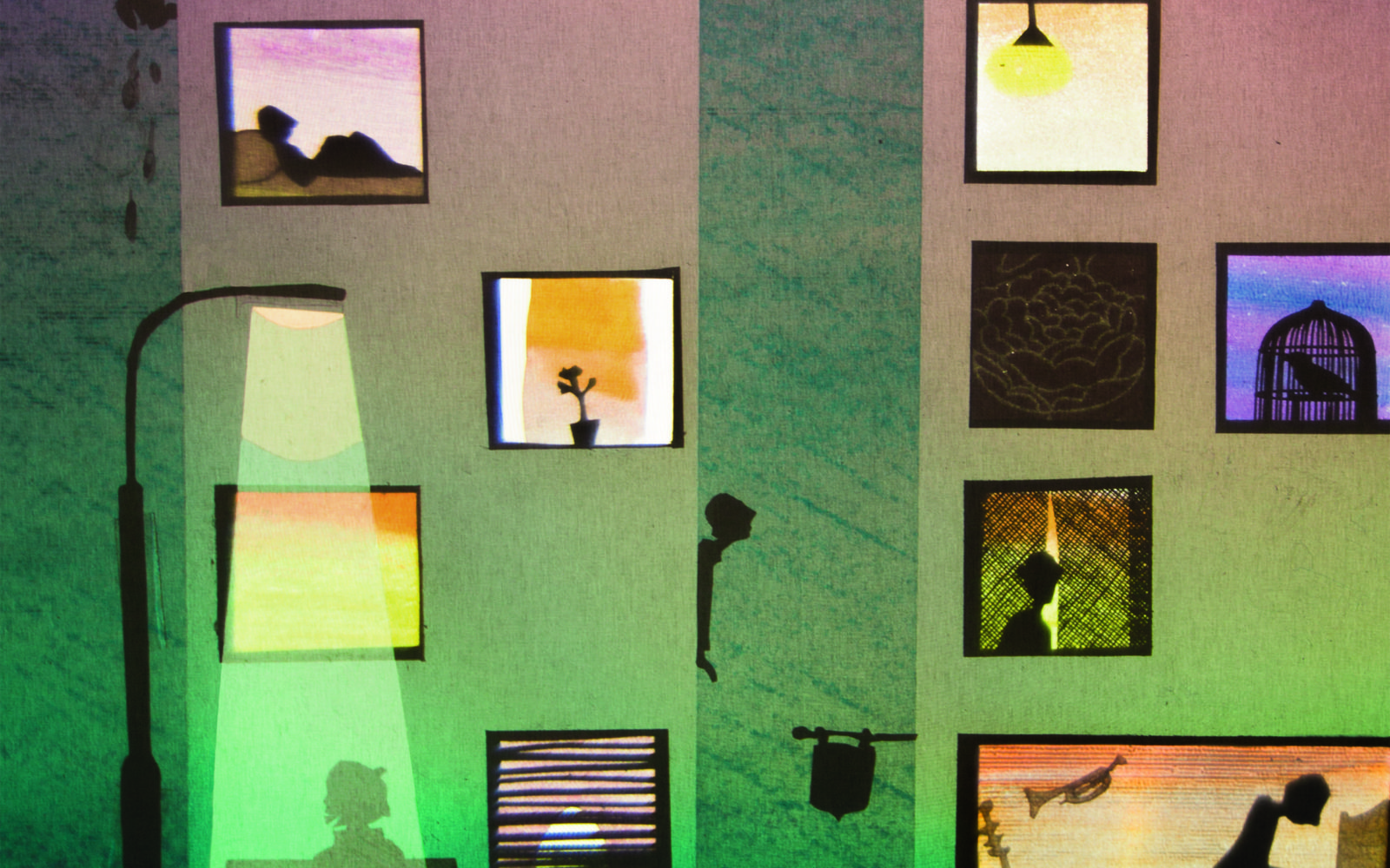 Een voorstelling over een straat vol gesloten deuren, overlopende harten en muziek die door de muren dringt.
